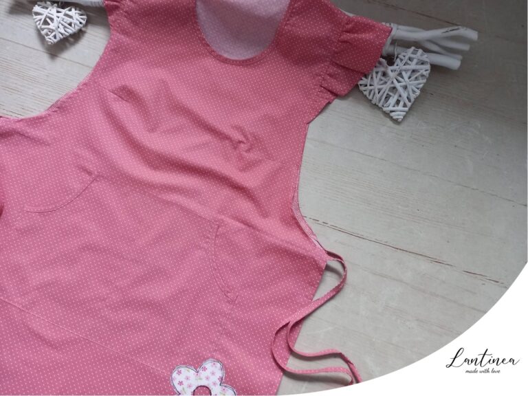 Pamučna kuta na vezanje sa džepom od pamučne tkanine s ručno izrađenom aplikacijom "Srce bubamare".Mogućnost personaliziranja imena po želji.