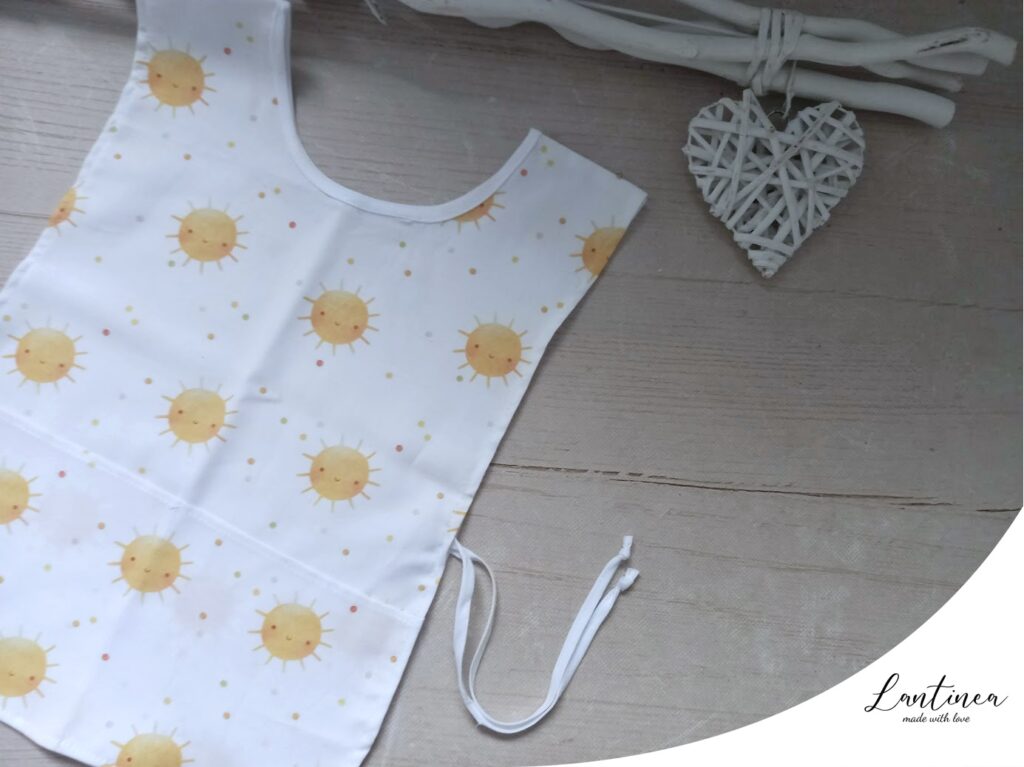 Dječja pamučna pregača s preslatkim dezenom sunčeka.Mogućnost personaliziranja imena po želji.