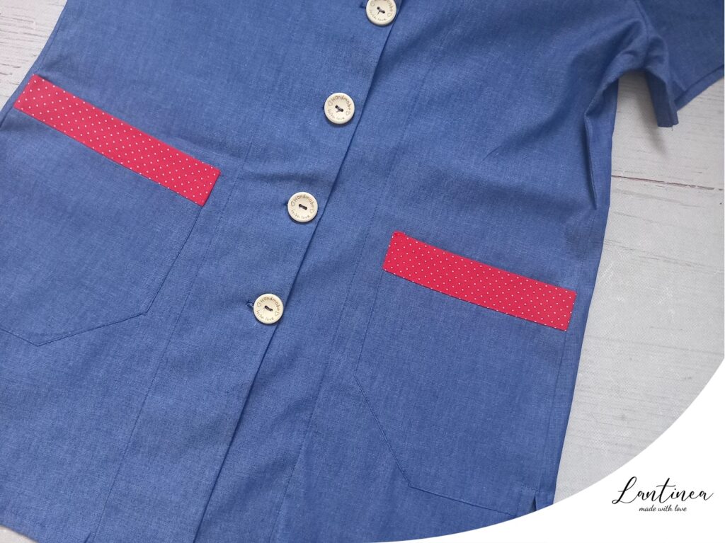 Kvalitetna Tkanina:Izrađena od 100% pamuka (tanki traper),naša radna kuta nudi savršenu ravnotežu između udobnosti,trajnosti i manje gužvanja.