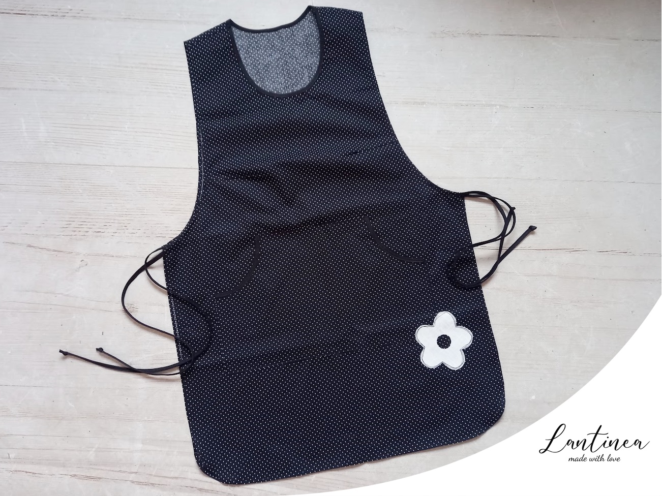 Pamučna radna kuta sa ručno izrađenom aplikacijom “Cvjetić”.Mogućnost personaliziranja imena.