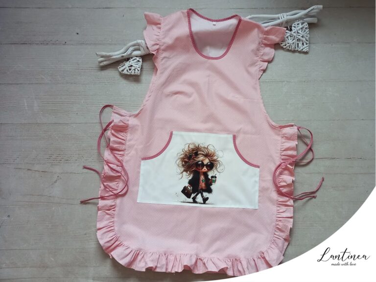 Pamučna kuta na vezanje s džepom od tankog pamuka i volančićima.Mogućnost personaliziranja imena po želji.